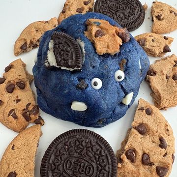 A fun and flavorful treat that’s as wild as it looks! This blue cookie is packed with chunks of Chips Ahoy chocolate chip cookies, Oreo cookies and white chocolate chips, then topped with candy eyes for the full monster effect. Soft, sweet, and loaded with cookie-on-cookie goodness—it's a playful bite kids and adults will love.